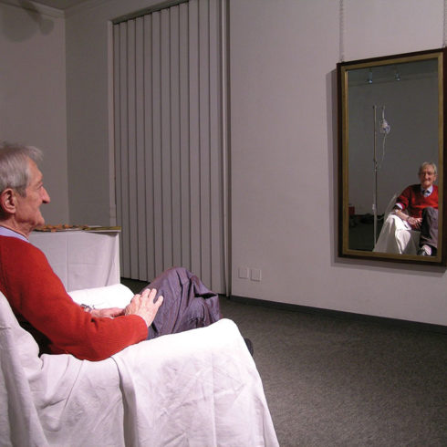 Le sue performance non sono quasi mai pubbliche, ma vengono documentate da fotografie e filmati che a loro volta modificati (in alcuni casi con minimi interventi pittorici), diventano oggetti reinseribili in ambientazioni, a metà strada fra scenografia e arredamento, che ulteriormente registrati nel loro nuovo assetto entrano a far parte di un flusso continuo (l’opera in corso come corso dell’opera) e potenzialmente interminabile (forse come un’analisi freudiana) di comunicazione e, in un certo senso, di contro-narrazione.