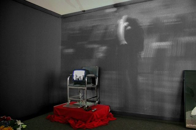 <Una sua installazione che di recente abbiamo visitato ci aggrediva funebre non perché il drappeggio, che pure era nero, stagliasse rimembranze di allestimenti obitoriali o perché la sala ex-manicomio più non avesse alcuno degli aliti vitali che sebbene in odore di follia vi dovettero spirare (al colmo dell’ambiguo!) e si presentasse prossimo ala rovina (…) . Il parto non sembrava aver recato dolori, il corso dell’esistenza si profilava effimero come tutte le installazioni da vernissage; alla morte, poi, eccoci al dunque, l’esortazione necrofora suonava con la leggerezza dei senza fede: seppellite in fretta>.